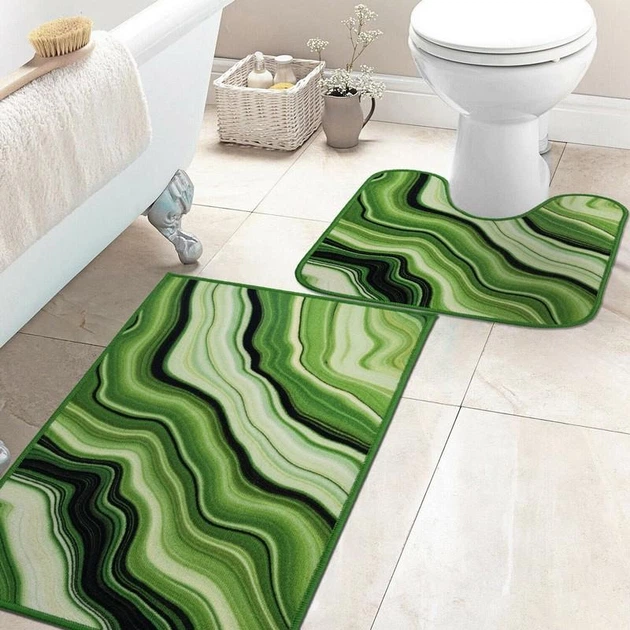 Набір килимків у ванну кімнату та туалет Print 214-2 80х120 та 57х60 см комплект ковриків для ванної кімнати та туалету зеле