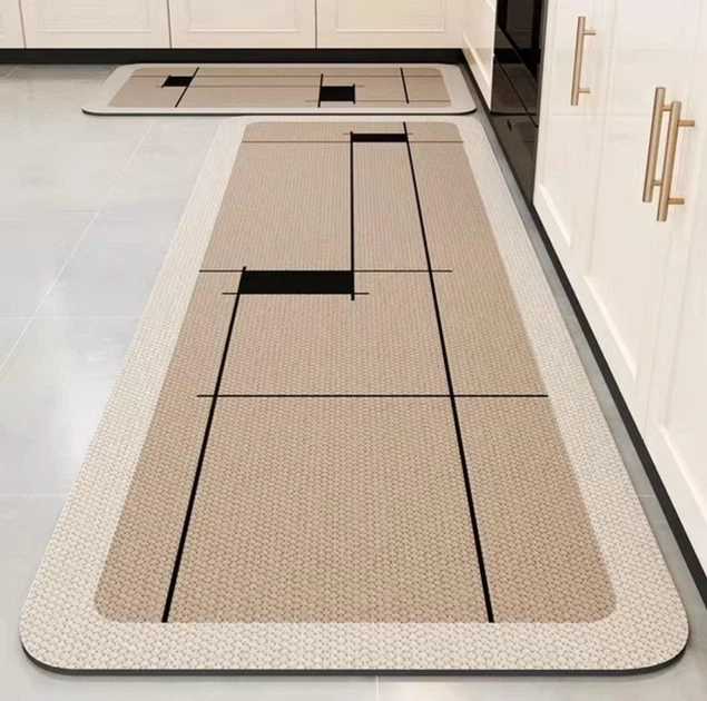 Набір килимків для кухні/ванної 2в1 Kitchen Geometry 120х40 см+60х40 см Діатомітовий антиковзний водопоглинаючий Бежево-кори
