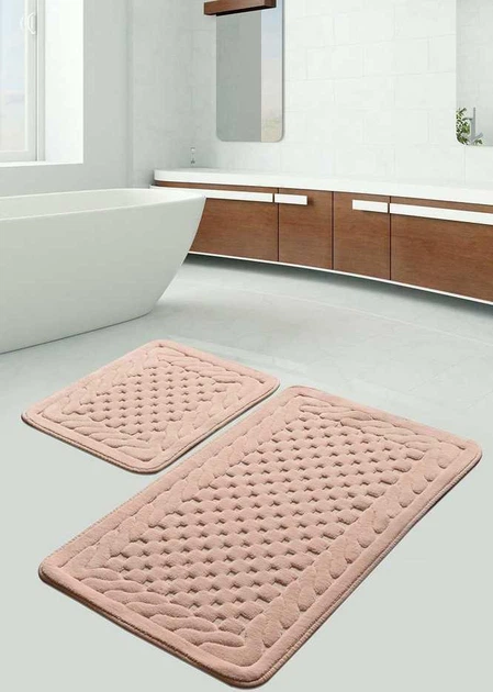Комплект килимків для ванної кімнати та туалету 60х100 см 100 бавовна пудрові