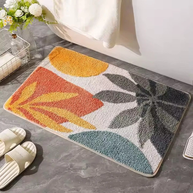 Килимок для ванної кімнати та душу мікрофібра атиковзний 50х80 см квітковий принт (JDT-0847733)
