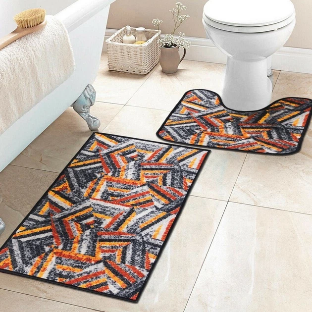 Набір килимків у ванну кімнату і туалет Taba 317-2 80х120 та 57х60 см сірий помаранчевий