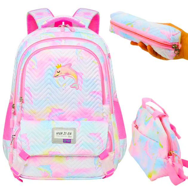 Рюкзак шкільний для дівчаток 3в1 (портфель+пенал+сумка) 43х20х31см, Дельфін, Синій / Портфель до школи (L)