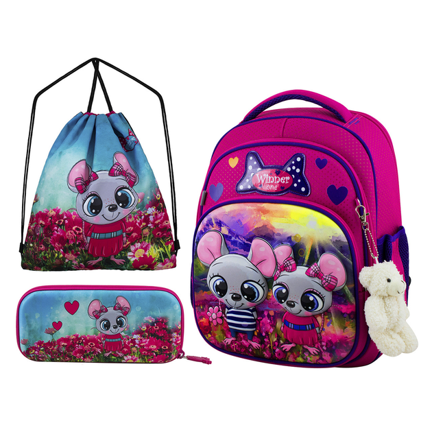 Шкільний ранець для дівчаток Winner One 7004 Full Set (комплект для 1 - 4 класу)
