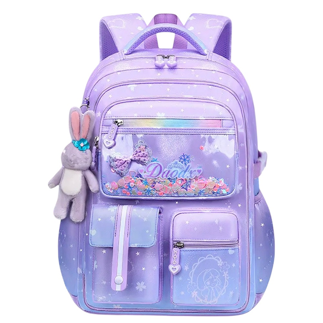 Шкільний рюкзак для дівчинок з підвіскою у вигляді кролика Фіолетовий (26114)