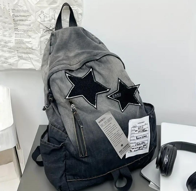 Рюкзак для Дівчинки Джинсовий із Зірками Підлітковий 39х29х12 см Чорний міський, жіночий