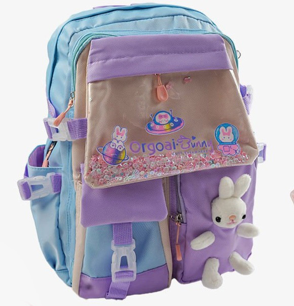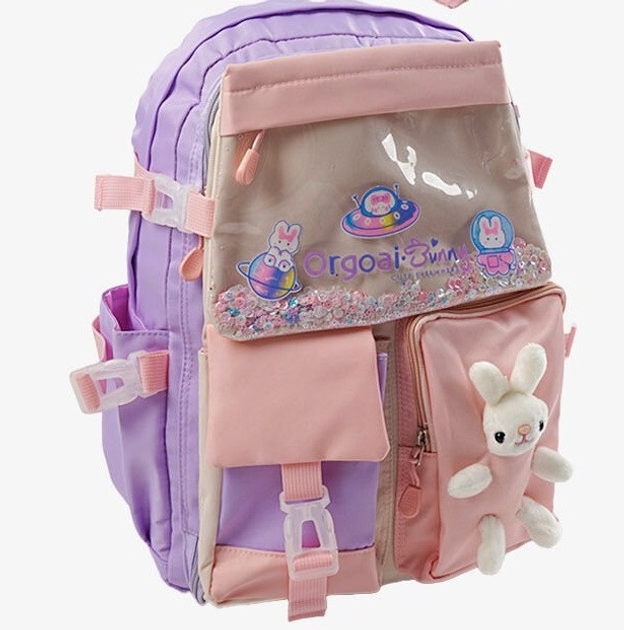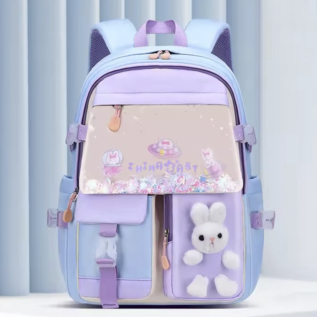 Шкільний рюкзак для дівчинки з м'якою іграшкою кроликом