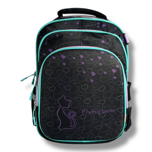 Шкільний рюкзак для дівчинки з принтом Котик та сердечка, каркасний та місткий, 22 л ZhiHuiShenTong