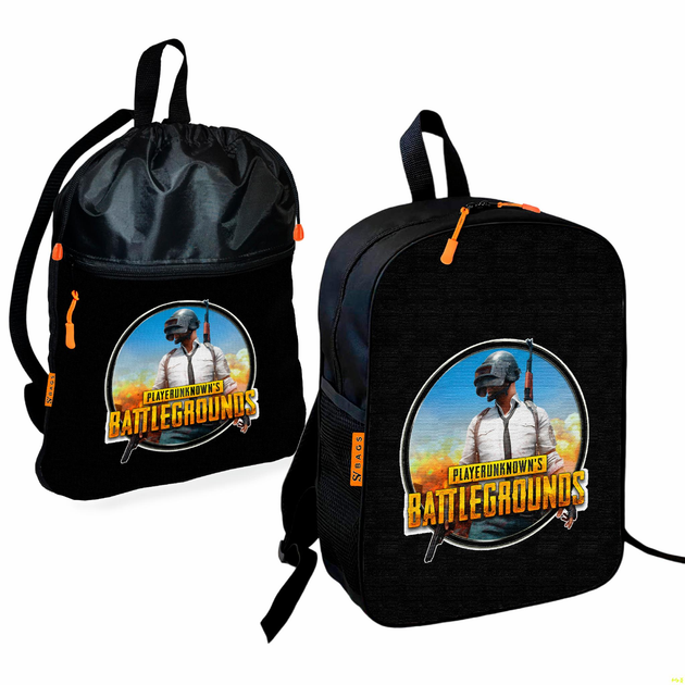 Рюкзак дитячий шкільний 36х27см + Сумка для взуття спортивної форми Пабг «PUBG» рюкзак-мішок 43х32см з розширювальним клапан