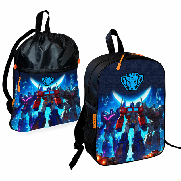 Рюкзак дитячий шкільний 36х27см + Сумка для взуття спортивної форми Роботи Трансформери рюкзак-мішок 43х32см з розширювальни