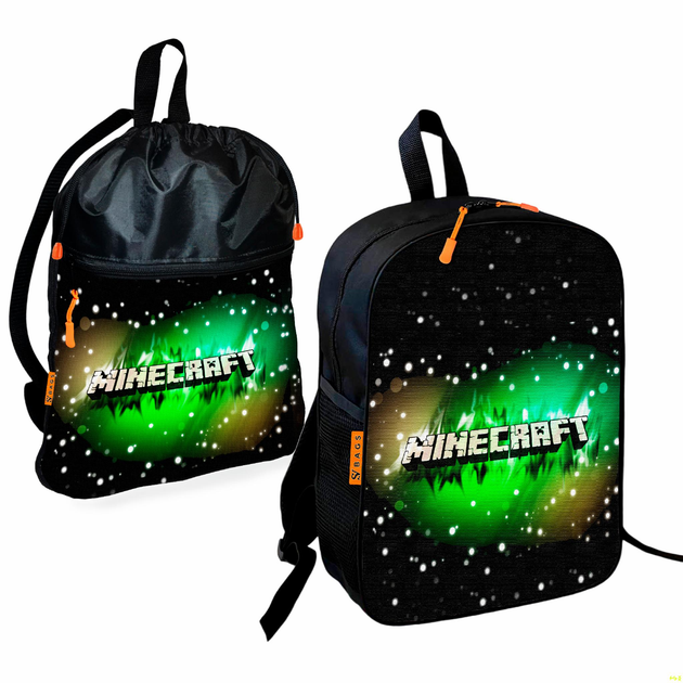 Рюкзак дитячий шкільний 36х27см + Сумка для взуття спортивної форми Майнкрафт "Minecraft" рюкзак-мішок 43х32см з розширюваль