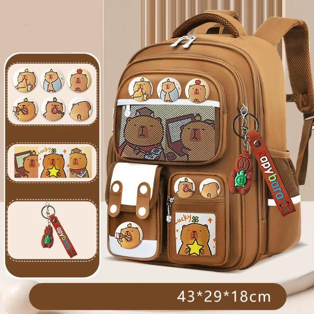 Шкільний рюкзак з ортопедичною спинкою та іграшками в наборі Капібару. Коричневий.