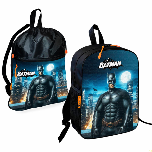 Рюкзак дитячий шкільний 36х27см + Сумка для взуття спортивної форми Бетмен "Batman" рюкзак-мішок 43х32см з розширювальним кл