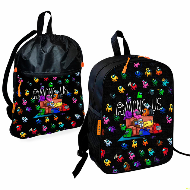 Рюкзак дитячий шкільний 36х27см + Сумка для взуття спортивної форми Амонг Ас "Among Us" рюкзак-мішок 43х32см з розширювальни