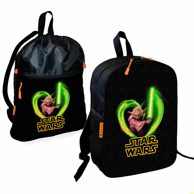 Рюкзак дитячий шкільний 36х27см + Сумка для взуття спортивної форми Йода Star Wars рюкзак-мішок 43х32см з розширювальним кла