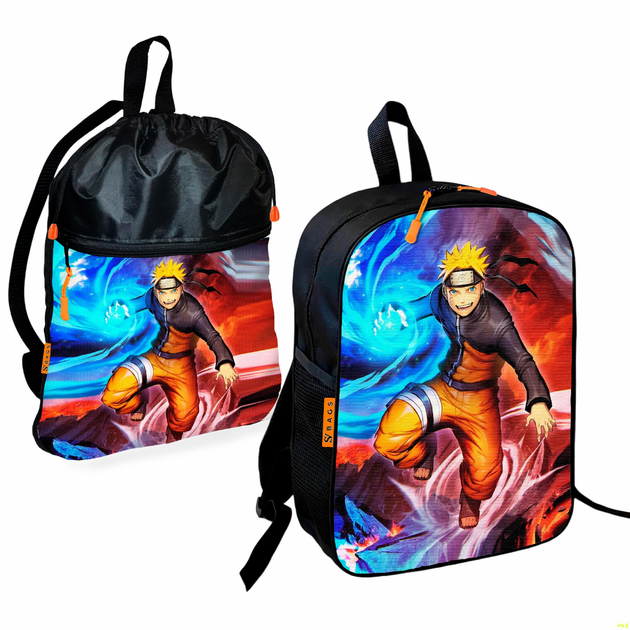 Рюкзак дитячий шкільний 36х27см + Сумка для взуття спортивної форми Аніме Наруто Акацукі рюкзак-мішок 43х32см з розширювальн