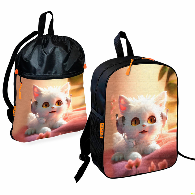 Рюкзак дитячий шкільний 36х27см + Сумка для взуття спортивної форми з кошеням рюкзак-мішок 43х32см з розширювальним клапаном