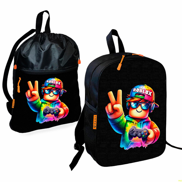 Рюкзак дитячий шкільний 36х27см + Сумка для взуття спортивної форми Роблокс «Roblox» рюкзак-мішок 43х32см з розширювальним к