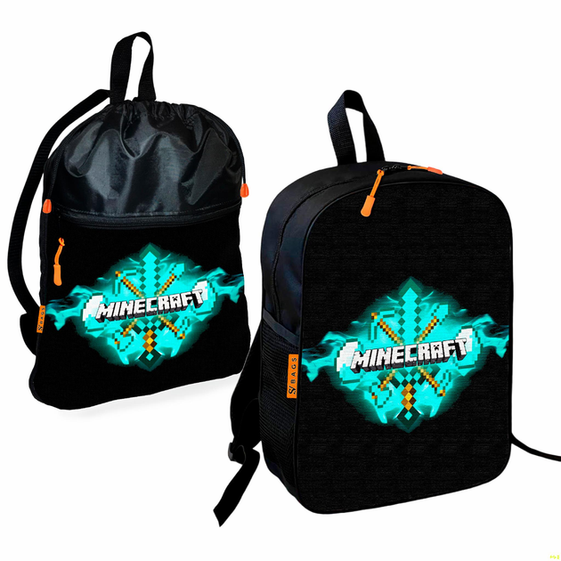 Рюкзак дитячий шкільний 36х27см + Сумка для взуття спортивної форми Майнкрафт "Minecraft" рюкзак-мішок 43х32см з розширюваль