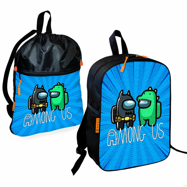 Рюкзак дитячий шкільний 36х27см + Сумка для взуття спортивної форми Амонг Ас "Among Us" рюкзак-мішок 43х32см з розширювальни