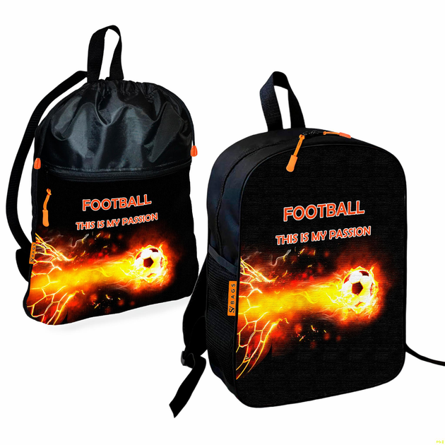 Рюкзак дитячий шкільний 36х27см + Сумка для взуття спортивної форми Футбол рюкзак-мішок 43х32см з розширювальним клапаном дл