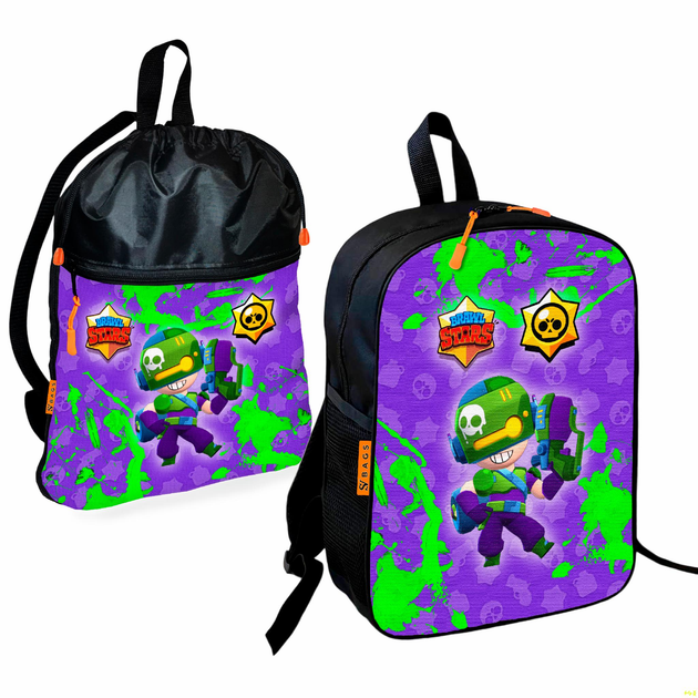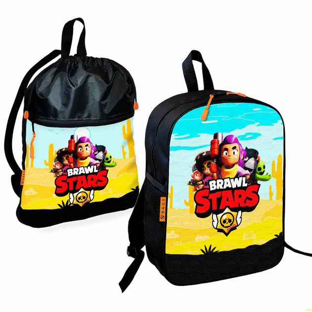 Рюкзак дитячий шкільний 36х27см + Сумка для взуття спортивної форми Бравл Старс "Brawl Stars" рюкзак-мішок 43х32см з розширю
