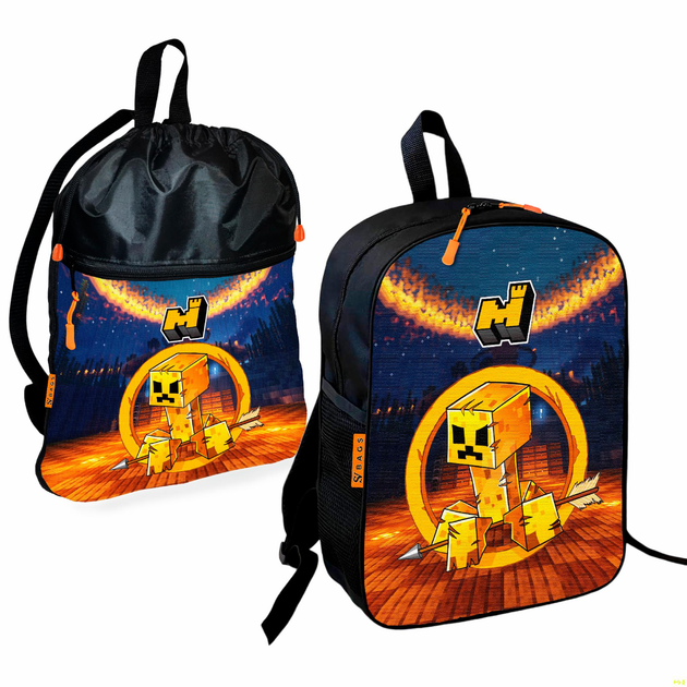 Рюкзак дитячий шкільний 36х27см + Сумка для взуття спортивної форми Майнкрафт "Minecraft" рюкзак-мішок 43х32см з розширюваль