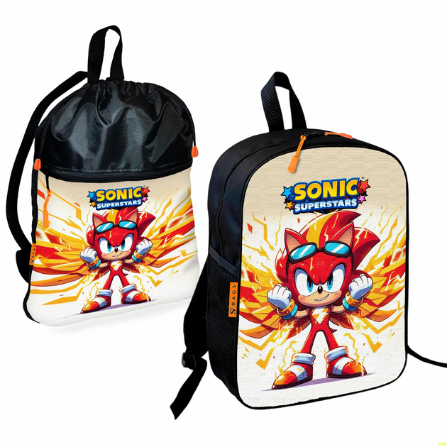 Рюкзак дитячий шкільний 36х27см + Сумка для взуття спортивної форми Супер Сонік «Super Sonic» рюкзак-мішок 43х32см з розширю