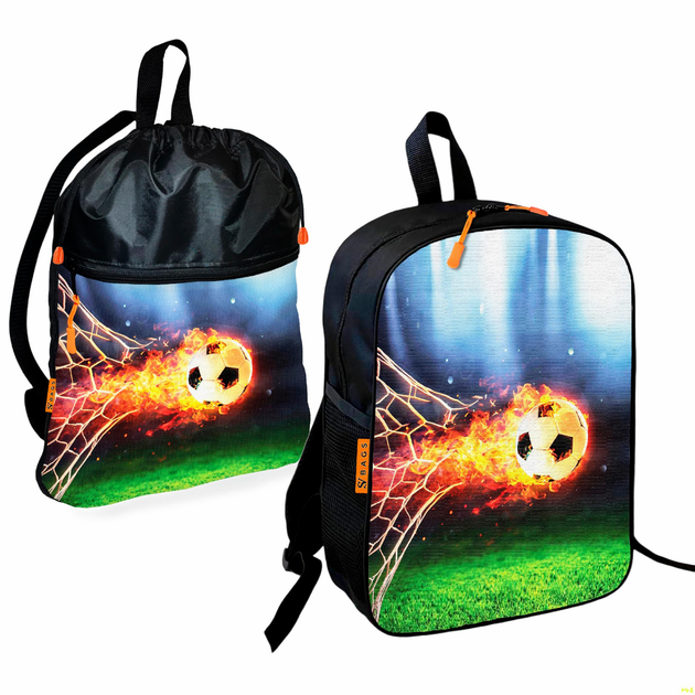 Рюкзак дитячий шкільний 36х27см + Сумка для взуття спортивної форми Футбол рюкзак-мішок 43х32см з розширювальним клапаном дл