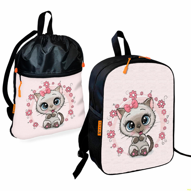 Рюкзак дитячий шкільний 36х27см + Сумка для взуття спортивної форми з кошеням рюкзак-мішок 43х32см з розширювальним клапаном