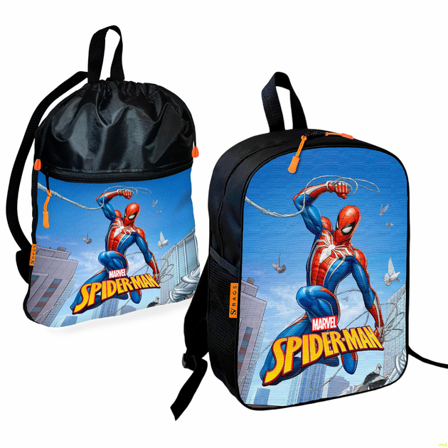 Рюкзак дитячий шкільний 36х27см + Сумка для взуття спортивної форми Людина-павук «Spider-Man» рюкзак-мішок 43х32см з розширю