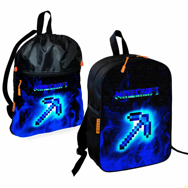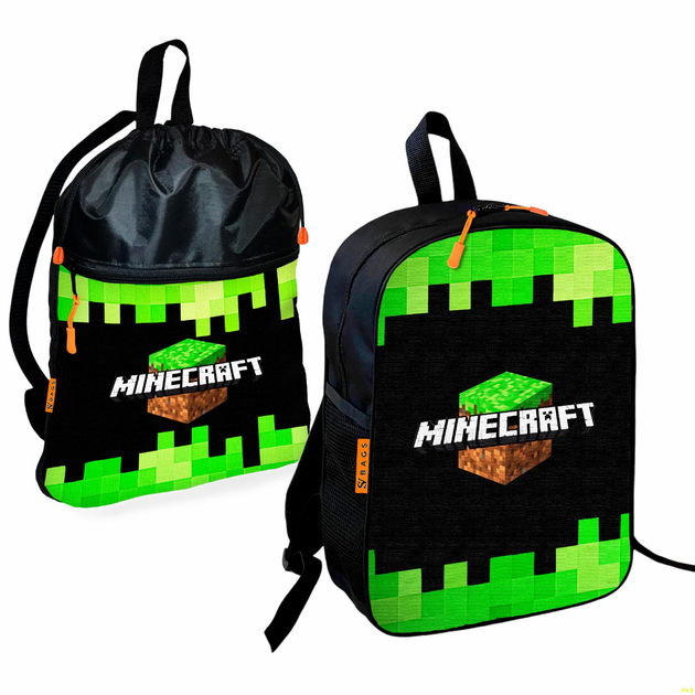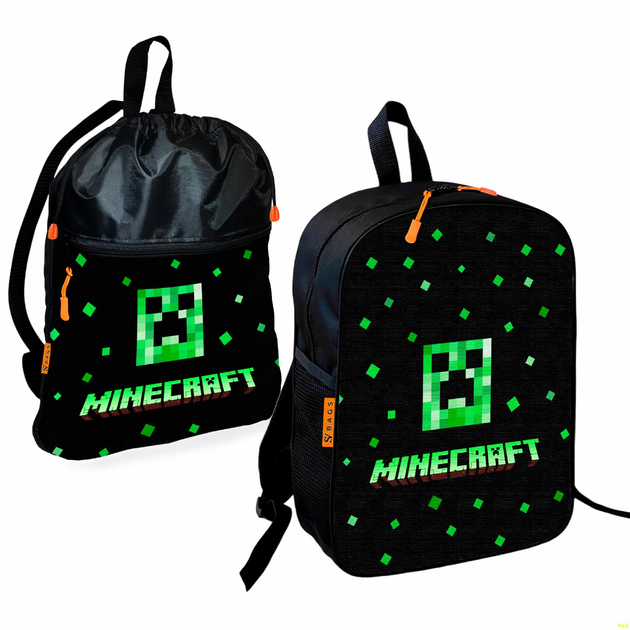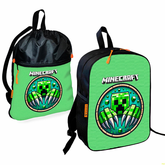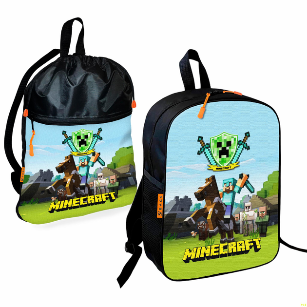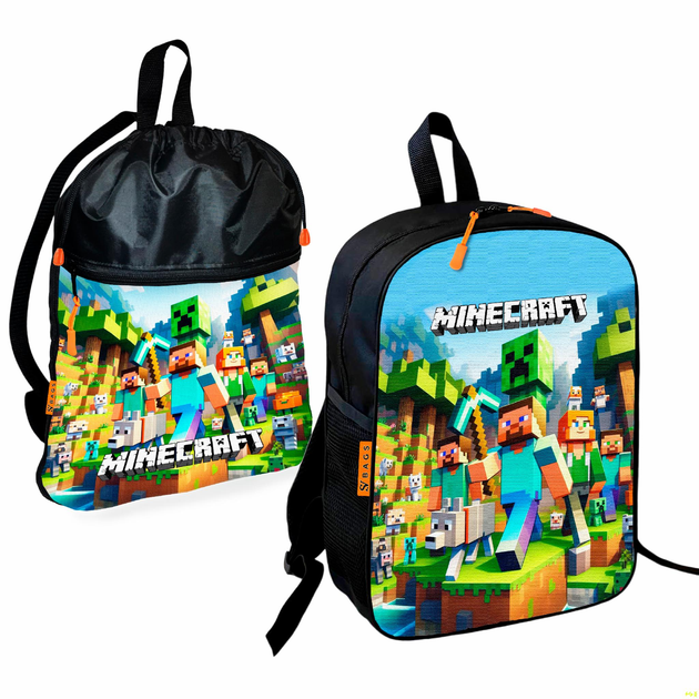 Рюкзак дитячий шкільний 36х27см + Сумка для взуття спортивної форми Майнкрафт "Minecraft" рюкзак-мішок 43х32см з розширюваль
