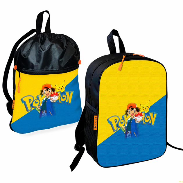 Рюкзак дитячий шкільний 36х27см + Сумка для взуття спортивної форми Покемон Пікачу рюкзак-мішок 43х32см з розширювальним кла