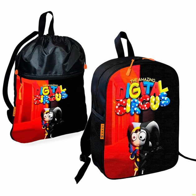 Рюкзак дитячий шкільний 36х27см + Сумка для взуття спортивної форми Цифровий Цирк «Amazing Digital Circus» рюкзак-мішок 43х3