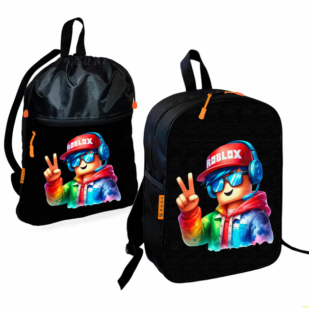 Рюкзак дитячий шкільний 36х27см + Сумка для взуття спортивної форми Роблокс «Roblox» рюкзак-мішок 43х32см з розширювальним к