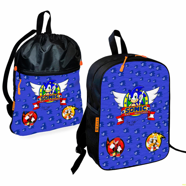 Рюкзак дитячий шкільний 36х27см + Сумка для взуття спортивної форми Супер Сонік «Super Sonic» рюкзак-мішок 43х32см з розширю