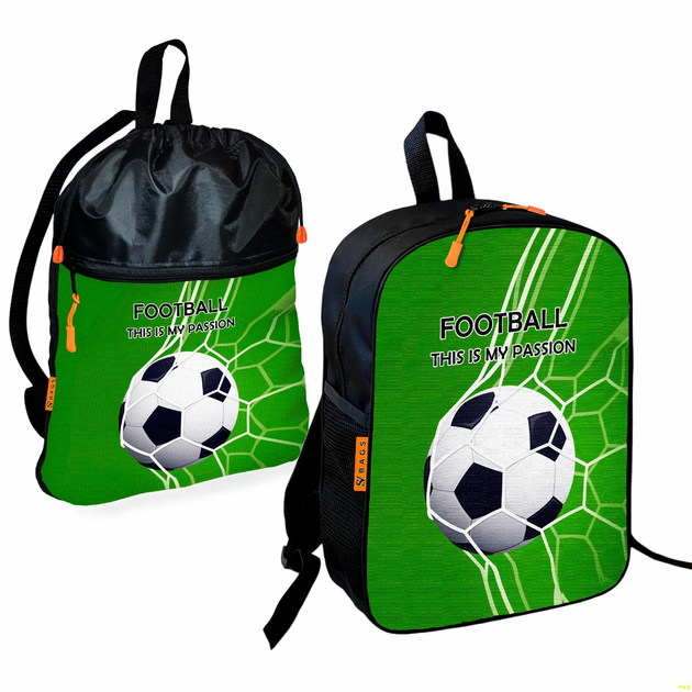 Рюкзак дитячий шкільний 36х27см + Сумка для взуття спортивної форми Футбол рюкзак-мішок 43х32см з розширювальним клапаном дл
