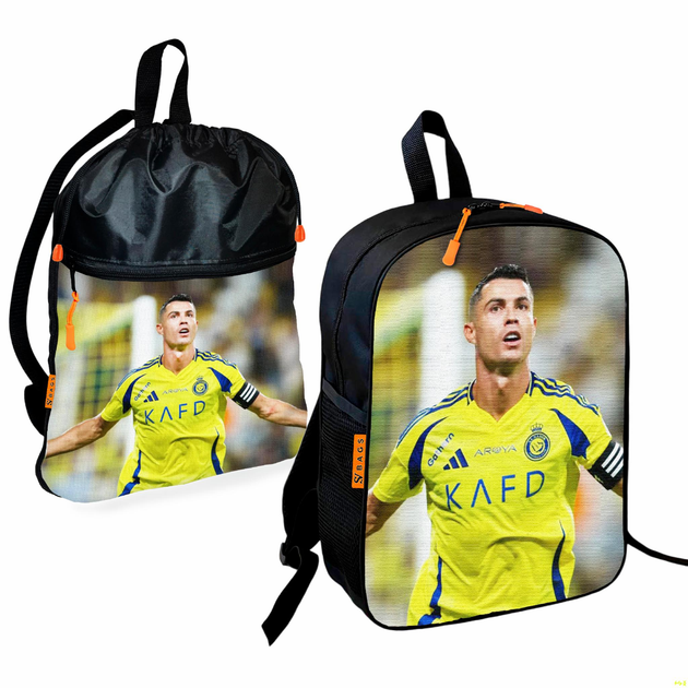 Рюкзак дитячий шкільний 36х27см + Сумка для взуття спортивної форми Кріштіану Роналду рюкзак-мішок 43х32см з розширювальним