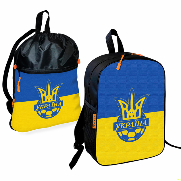 Рюкзак дитячий шкільний 36х27см + Сумка для взуття спортивної форми Футбол Україна рюкзак-мішок 43х32см з розширювальним кла