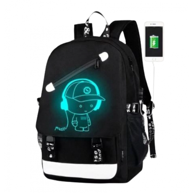Світний рюкзак молодіжний MUSIC Міський водовідштовхувальний матеріал USB-роз'єм Чорний