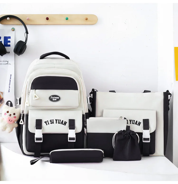 Шкільний рюкзак набір 5в1 для дівчинки 5-11 клас у комплекті сумка-шоппер клатч пенал YUAN чорно-білий