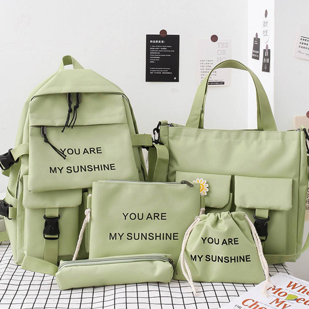 Шкільний рюкзак набір 5в1 для дівчинки 5-11 клас у комплекті сумка-шоппер клатч пенал YouAreMySunshine зелений