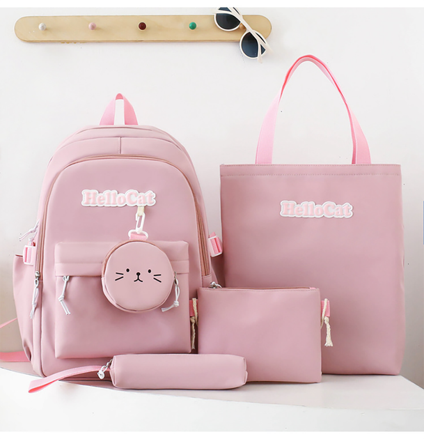 Шкільний рюкзак набір 5в1 для дівчинки 5-11 клас у комплекті сумка-шоппер клатч пенал Hello Cat рожевий