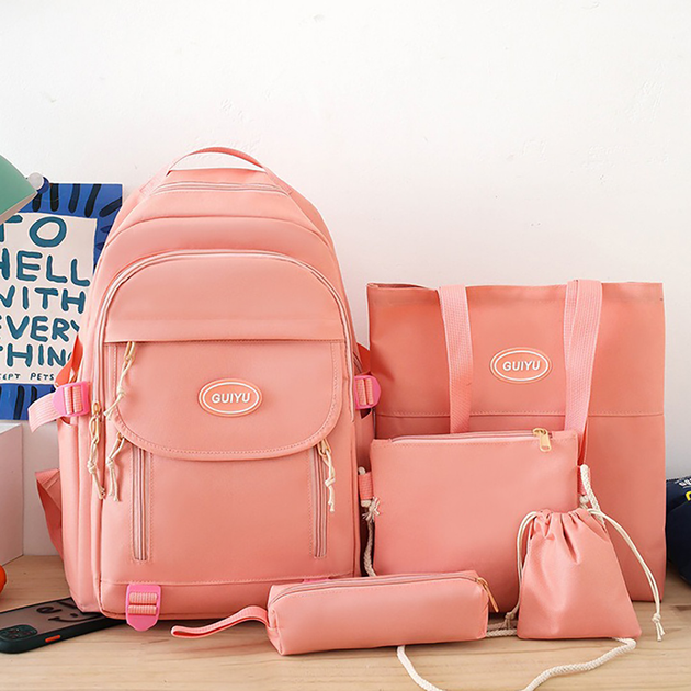 Шкільний рюкзак набір 5в1 для дівчинки 5-11 клас у комплекті сумка-шоппер пенал Комфорт рожевий