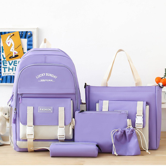 Шкільний рюкзак набір 5в1 для дівчинки 5-11 клас у комплекті сумка-шоппер клатч пенал LUCKY SUNDAY фіолетовий