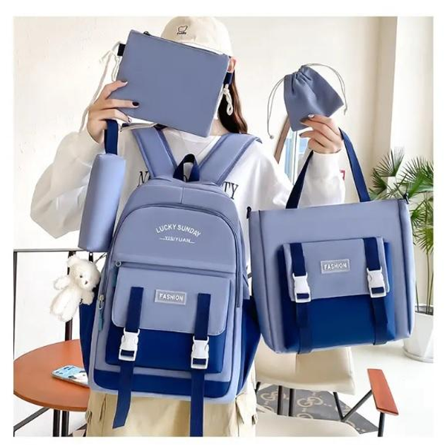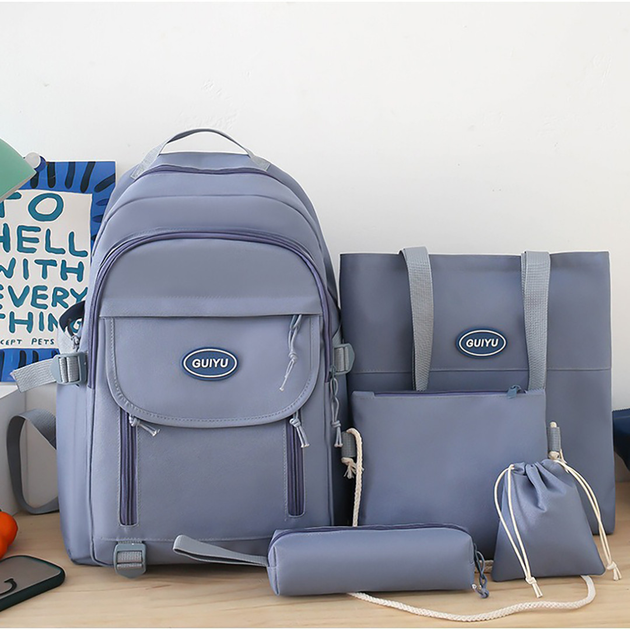 Шкільний рюкзак набір 5в1 для дівчинки 5-11 клас у комплекті сумка-шоппер пенал Комфорт блакитний