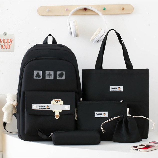 Шкільний рюкзак набір 5в1 для дівчинки 5-11 клас у комплекті сумка-шоппер клатч пенал чорний