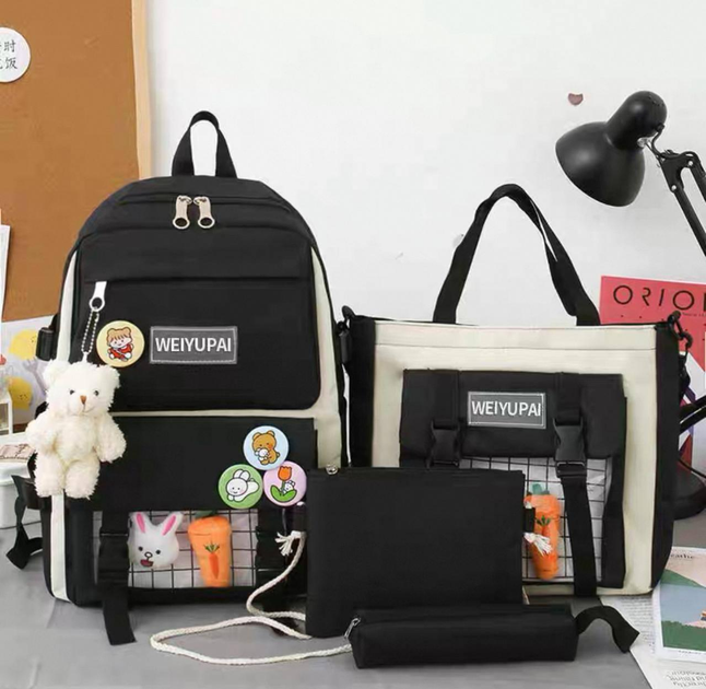 Дитячий рюкзак 4 в 1 (рюкзак 39х29х10 см; сумка 28х27х6 см; клатч 19,5х14 см; пенал 18х7 см) + брелок, Чорний