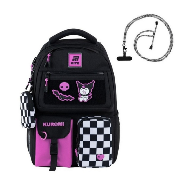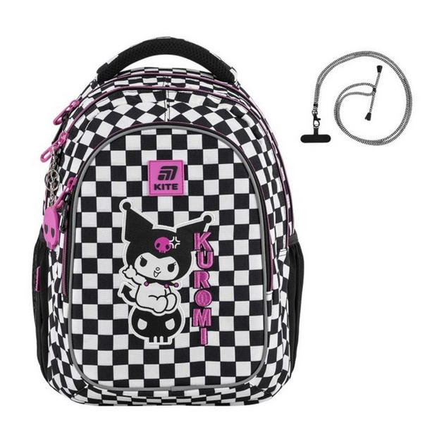 Рюкзак шкільний для підлітка ортопедичний Kite Education Teens Kuromi, для дівчаток, чорний/білий (HK25-8001M)