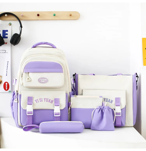 Шкільний рюкзак набір 5в1 для дівчинки 5-11 клас у комплекті сумка-шоппер клатч пенал YUAN фіолетовий