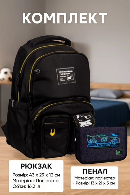 Рюкзак шкільний YES Money Duck TS-57 + пенал комплект чорного кольору 559983